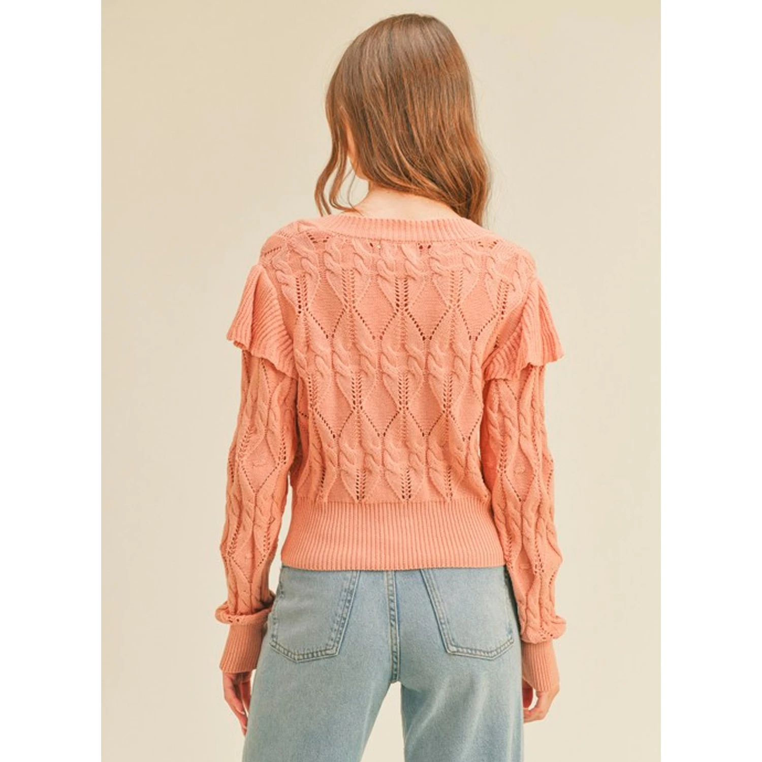 - Ruffle shoulder sweater cardigan