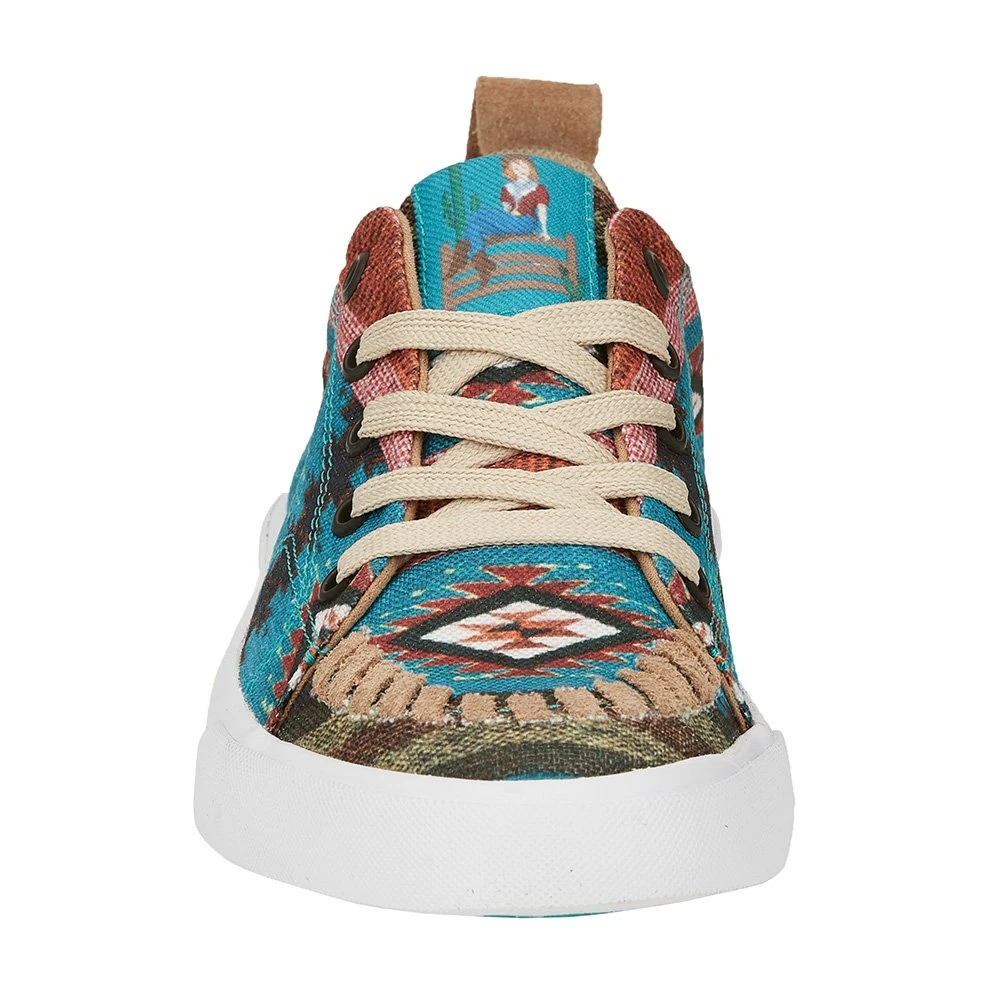 The Arreba! sneaker in a bold-scale, iconic Southwest cross print in vivid Turquoise is a fun, casual look for comfortable, all-day wear.