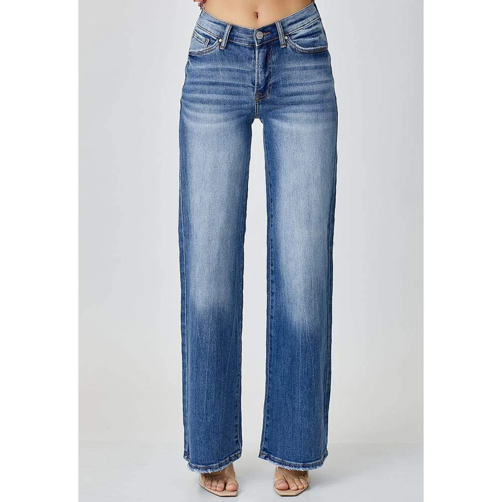 These trendy jeans have a mid-rise fit and a dip front design, giving them a unique and fashionable look. The comfortable, relaxed fit makes them perfect for everyday wear, and the durable denim fabric ensures they will last for seasons to come. Pair these jeans with a tucked-in blouse and heels for a chic outfit, or dress them down with a graphic t-shirt and sneakers.