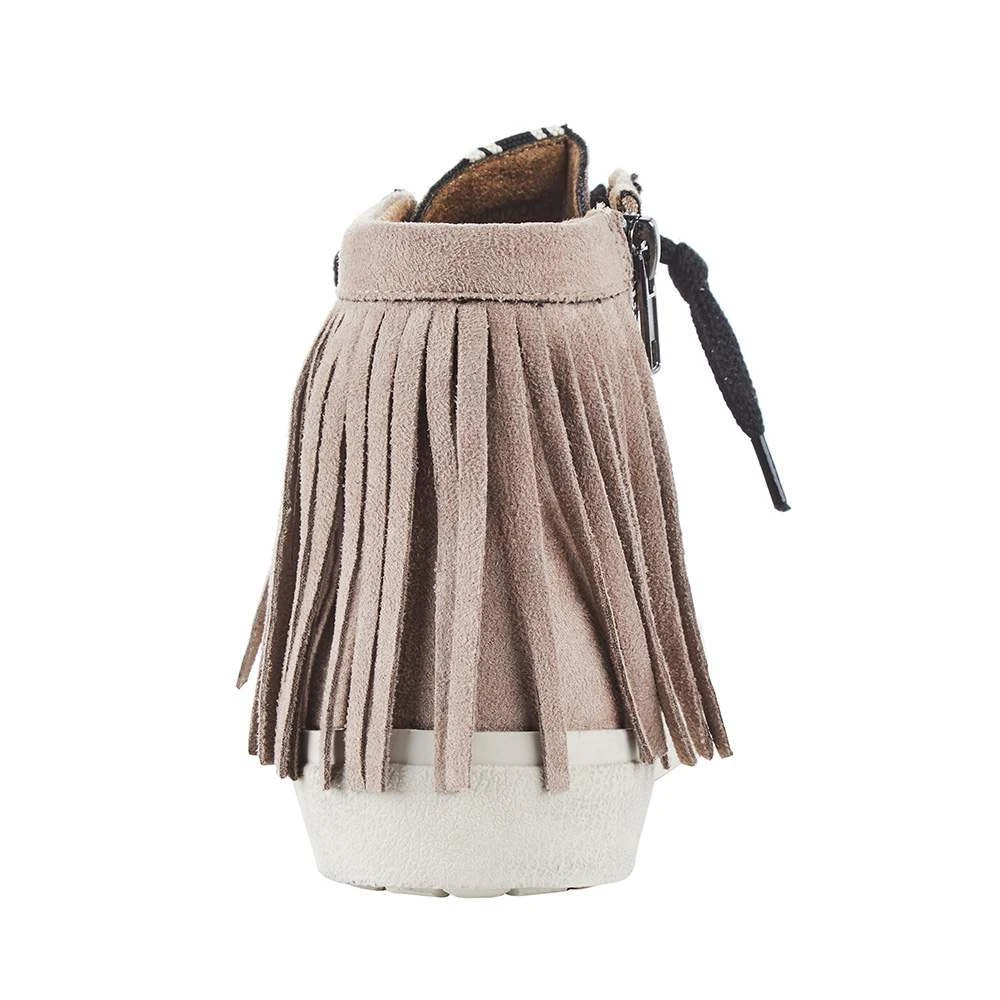 RUTH is inspired by classic vintage high top sneakers. This stylish pair has been updated with an added back fringe detail. Crafted from soft faux suede, RUTH will work great with any denim hue.